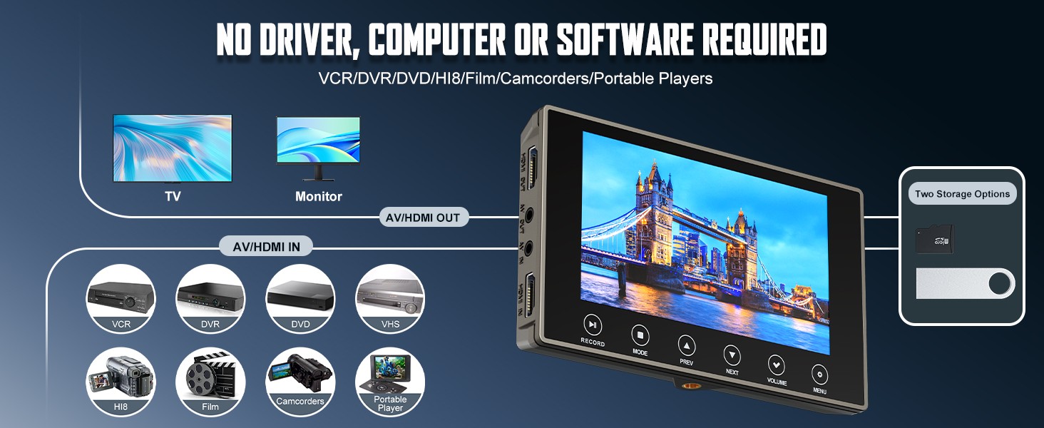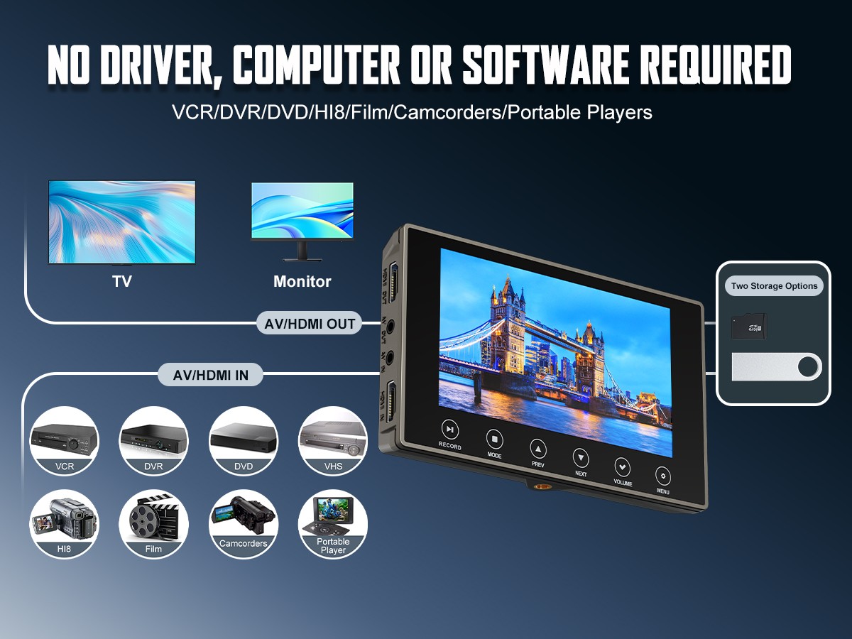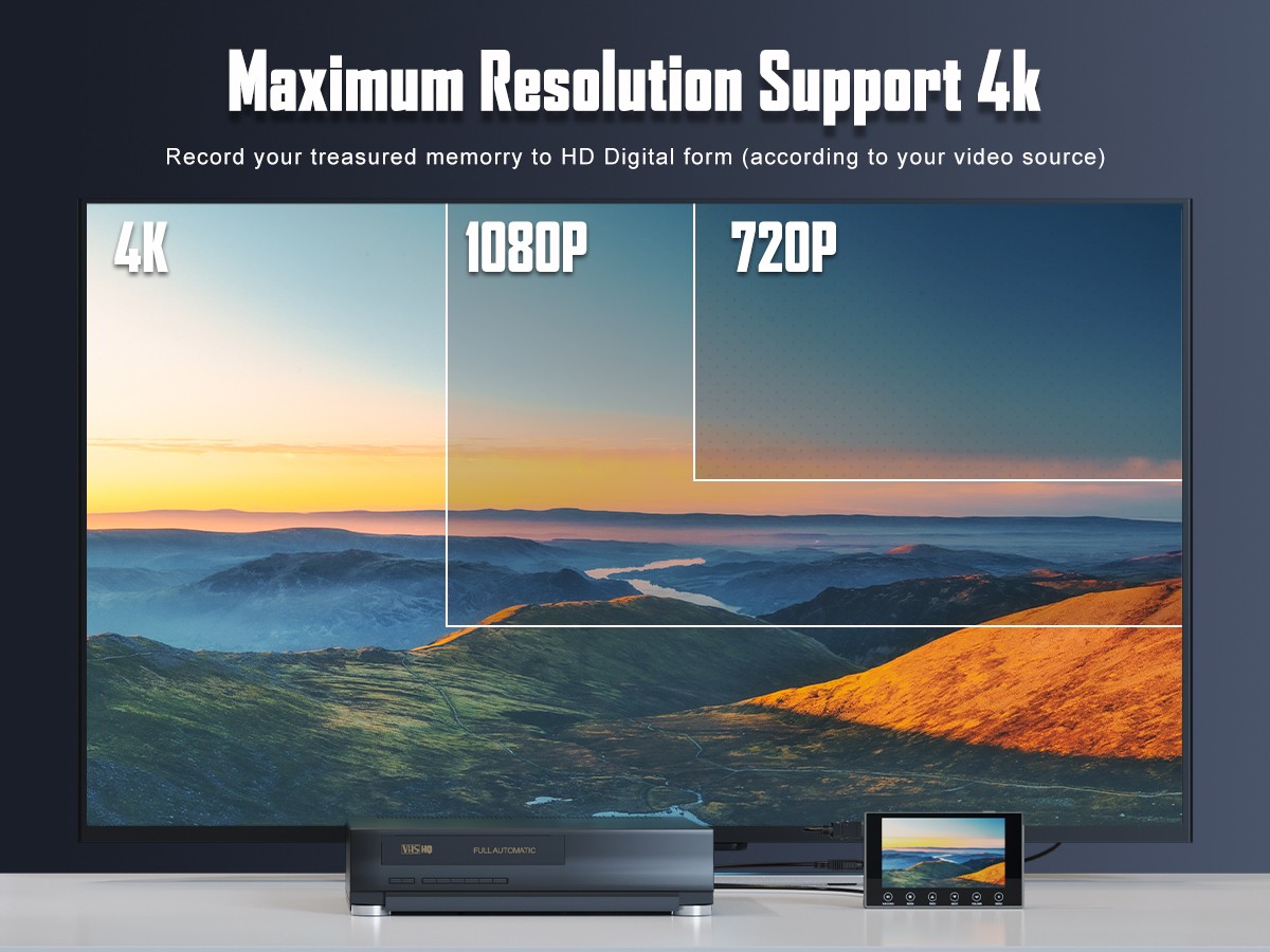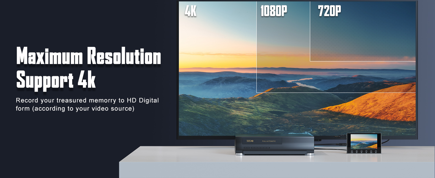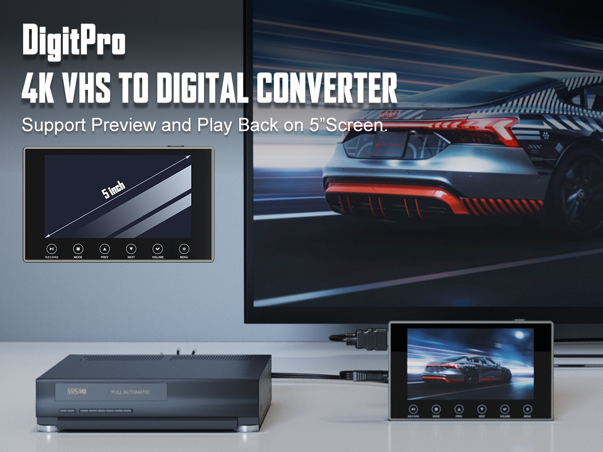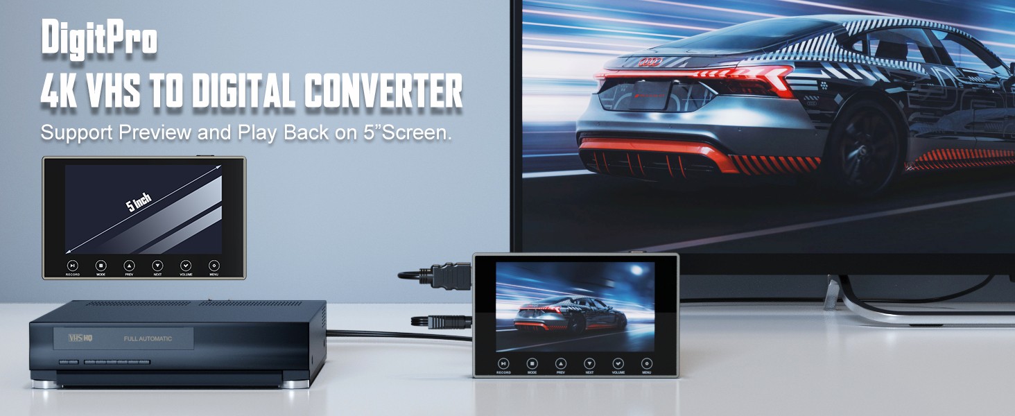 DigitPro VHS to Digital Converter 3.0, 5" Large Screen Video to Digital Converter, 4K HD Convert VCR HI8 8MM Tapes VHS Player DVD Camcorder Mini DV Cassette Tape Analog to Digital